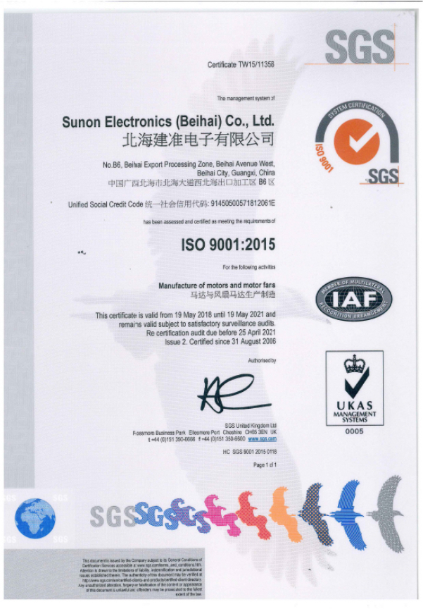 建準因應大規模量產需求,SUNON在台灣高雄及中國大陸的江蘇昆山以及廣西北海,共擁有三座設備齊全的專業製造工廠,生產全系列風扇產、馬達和各式散熱模組產品,透過ERP系統的管理,可配合客戶即時與彈性化的需求,量產能力更居業界之冠。