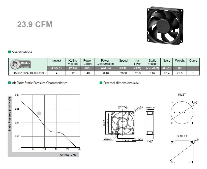 Sunon以對細節的挑剔和對聲音品質的堅持,開發『極.靜音風扇』系列,並結合微型馬達技術,創造扇葉與流道的最大空間。『極‧靜音風扇』之低伏啟動電壓特性,讓風扇在低轉速狀態下,展現運作寧靜與優越的解熱效能,可廣泛應用於醫療設備、家電設備、廚房設備、商業設備等領域。軸承: VAPO電壓: 12V型號: HA80251V4-10000-A99