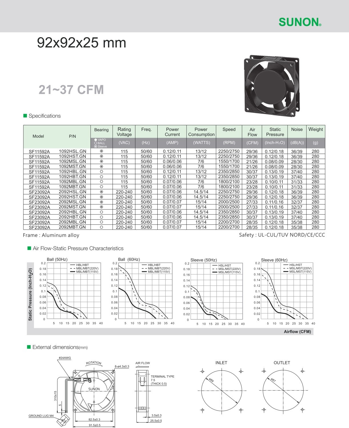 Model: SF11592A / SF23092A